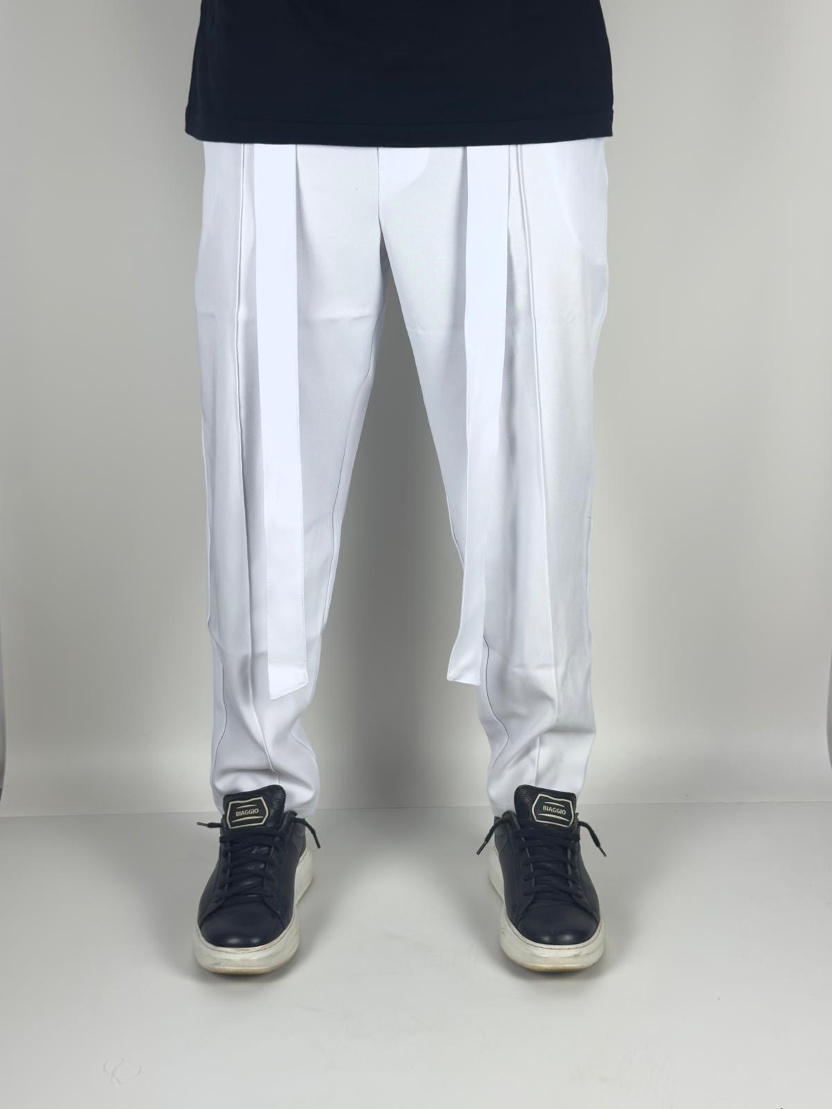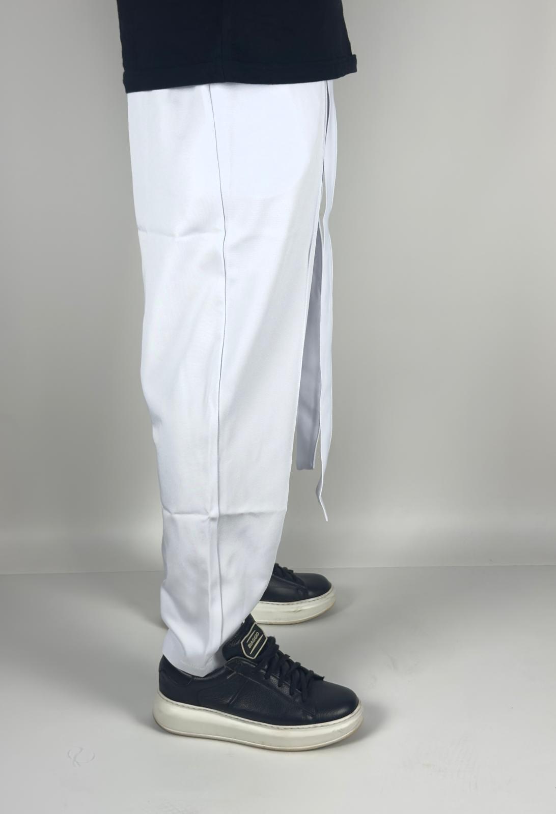 Pantaloni albi cu șnur lat – stil modern și confort absolut