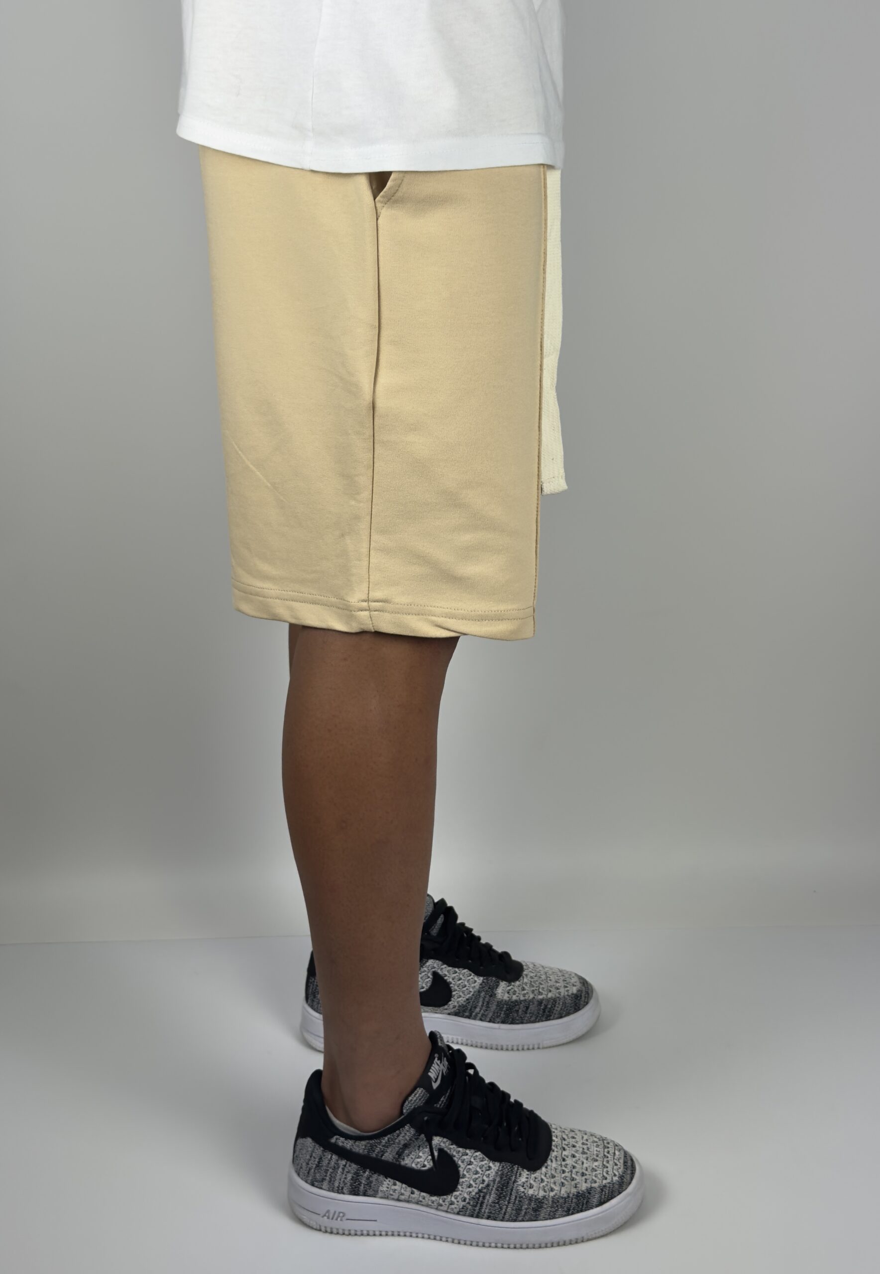 Tonurile neutre definesc rafinamentul casual. Pantalonii scurți bej deschis, confecționați din bumbac 100%, propun o estetică relaxată și luminoasă, potrivită pentru zilele însorite. Croiul curat, cu cusături verticale și șnur alb gros, creează un echilibru subtil între confort și design contemporan.